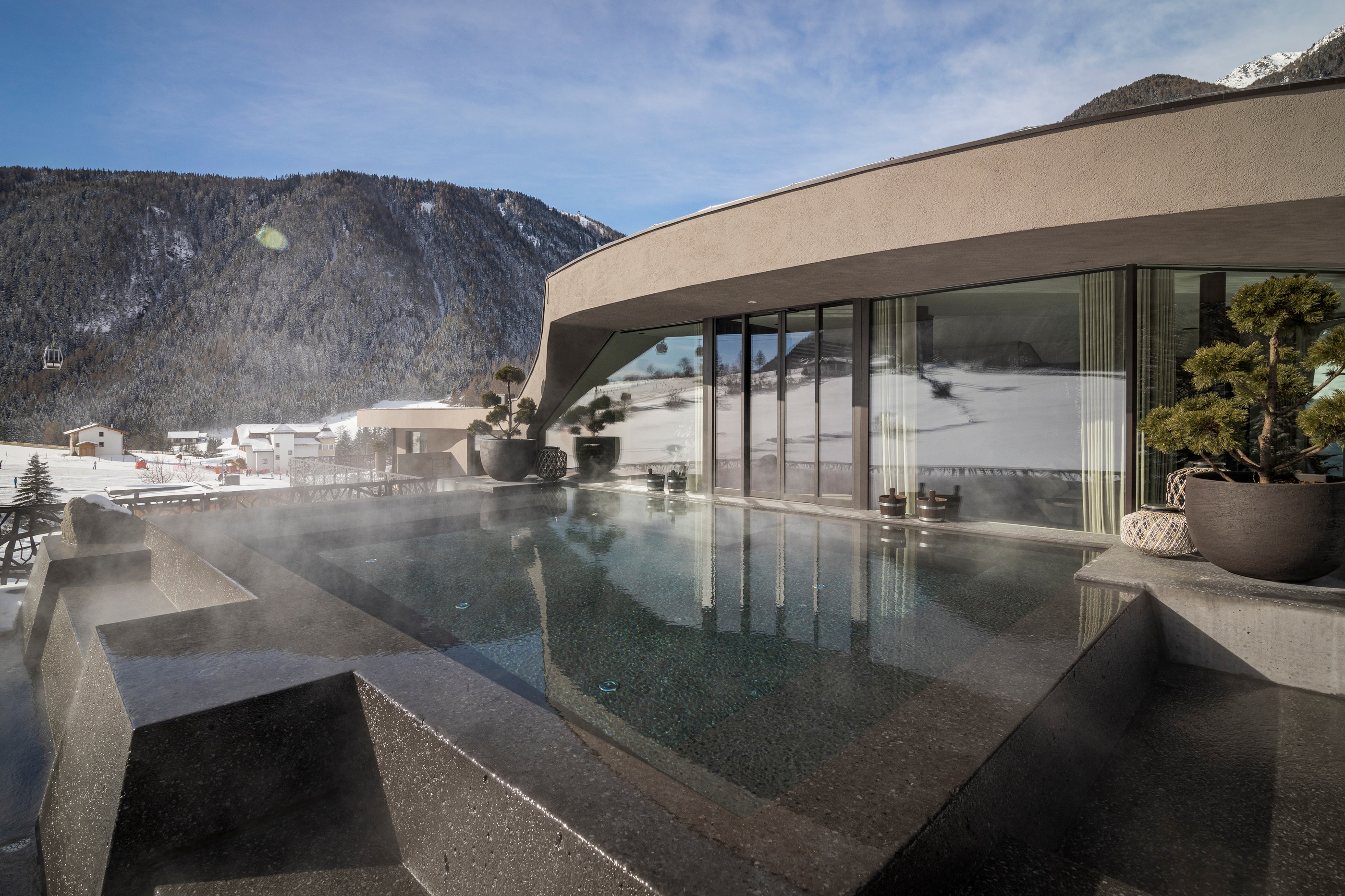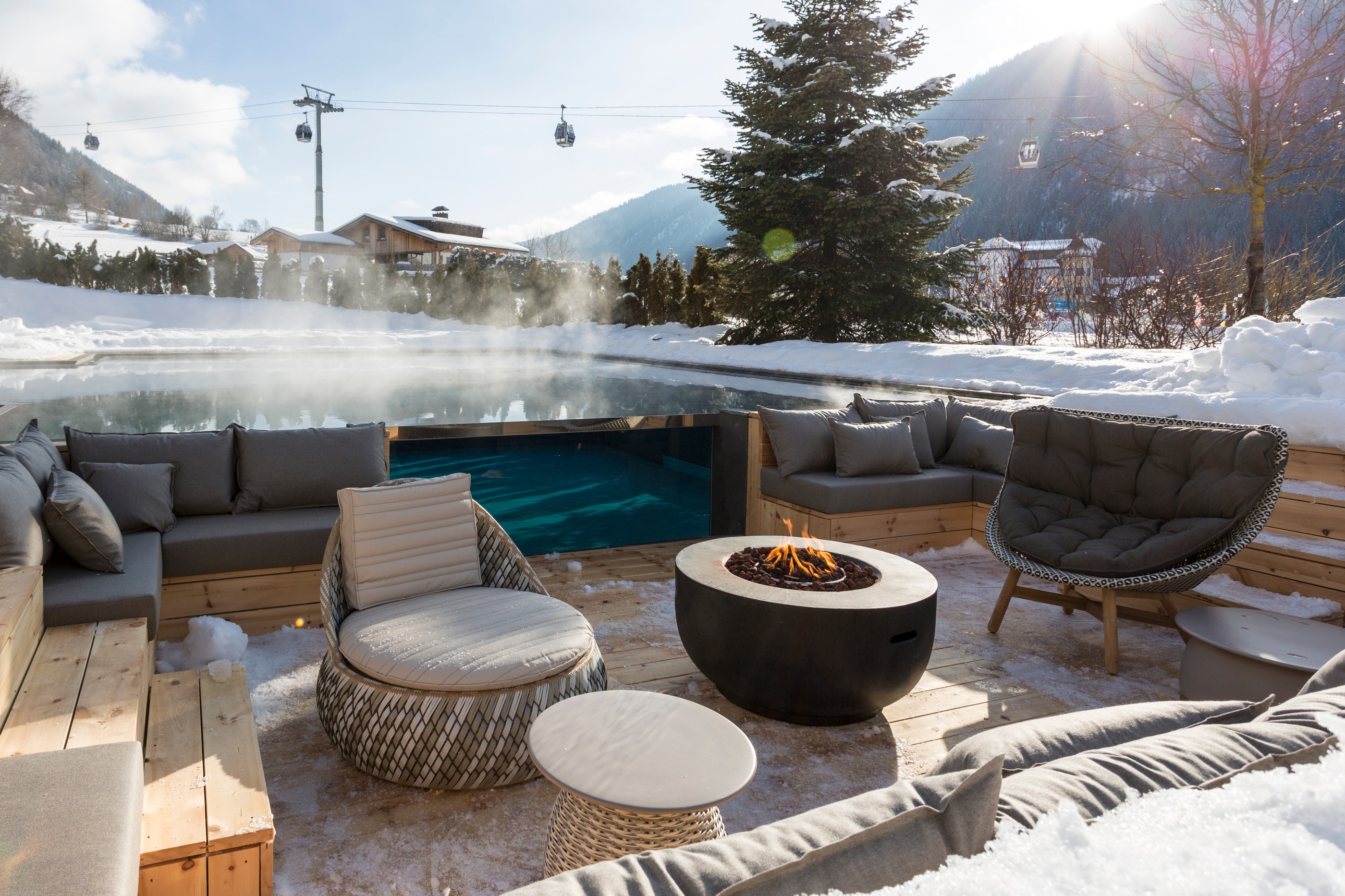 Der ganzjährig beheizte Infinity-Pool unter freiem Himmel bietet ein unvergleichliches Badeerlebnis mit Panoramablick auf die umliegende Bergwelt – ein Ort zum Loslassen, Eintauchen und Staunen.