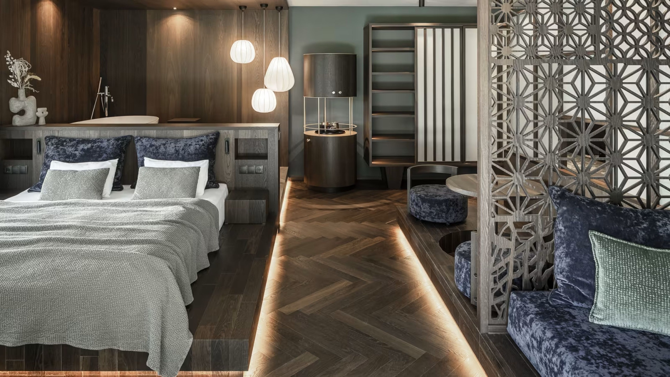 Das ganzheitliche Wellnesskonzept auf über 2.000 m² lädt zum Loslassen ein: mit Infinitypool, Panoramasaunen, Onsen-Bad am Rooftop und Spa-Anwendungen mit der hauseigenen Naturkosmetiklinie. Stille wird hier spürbar – und heilsam.
