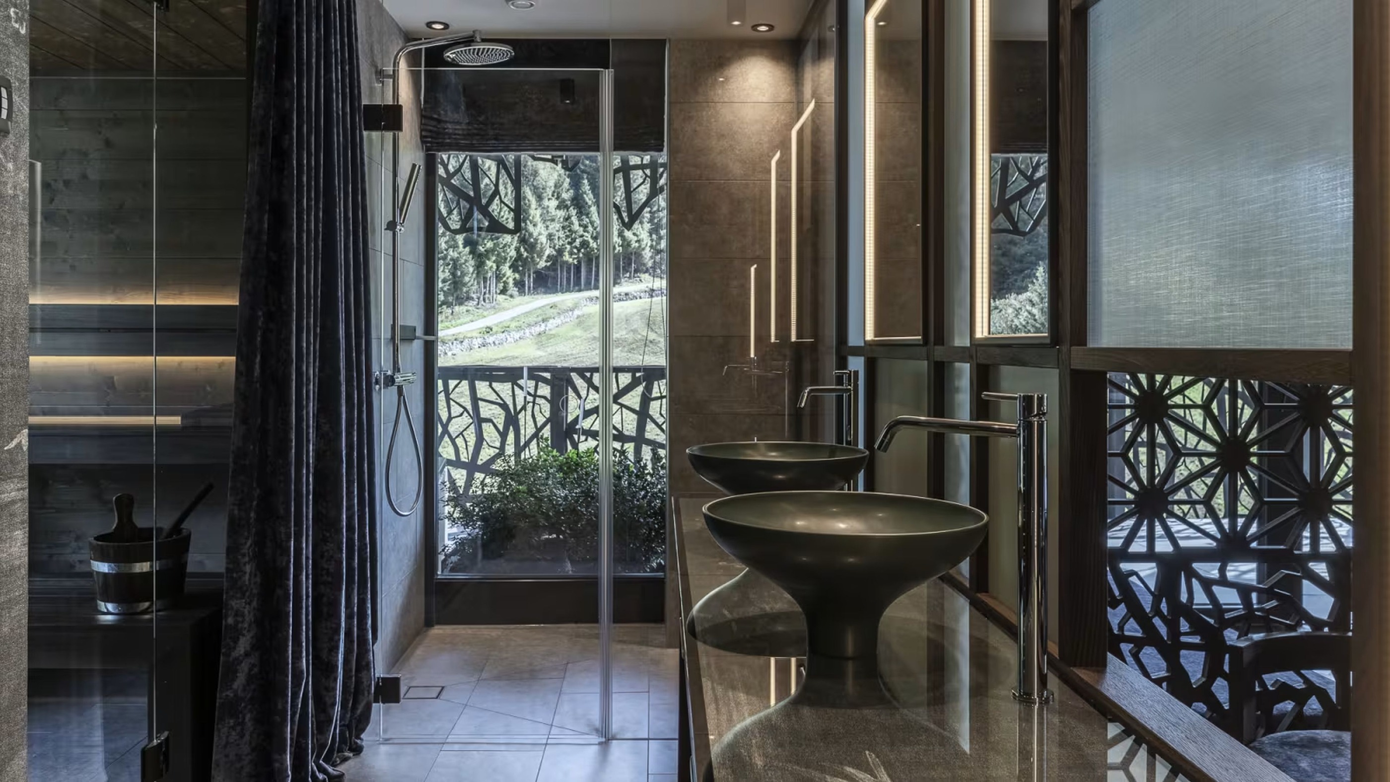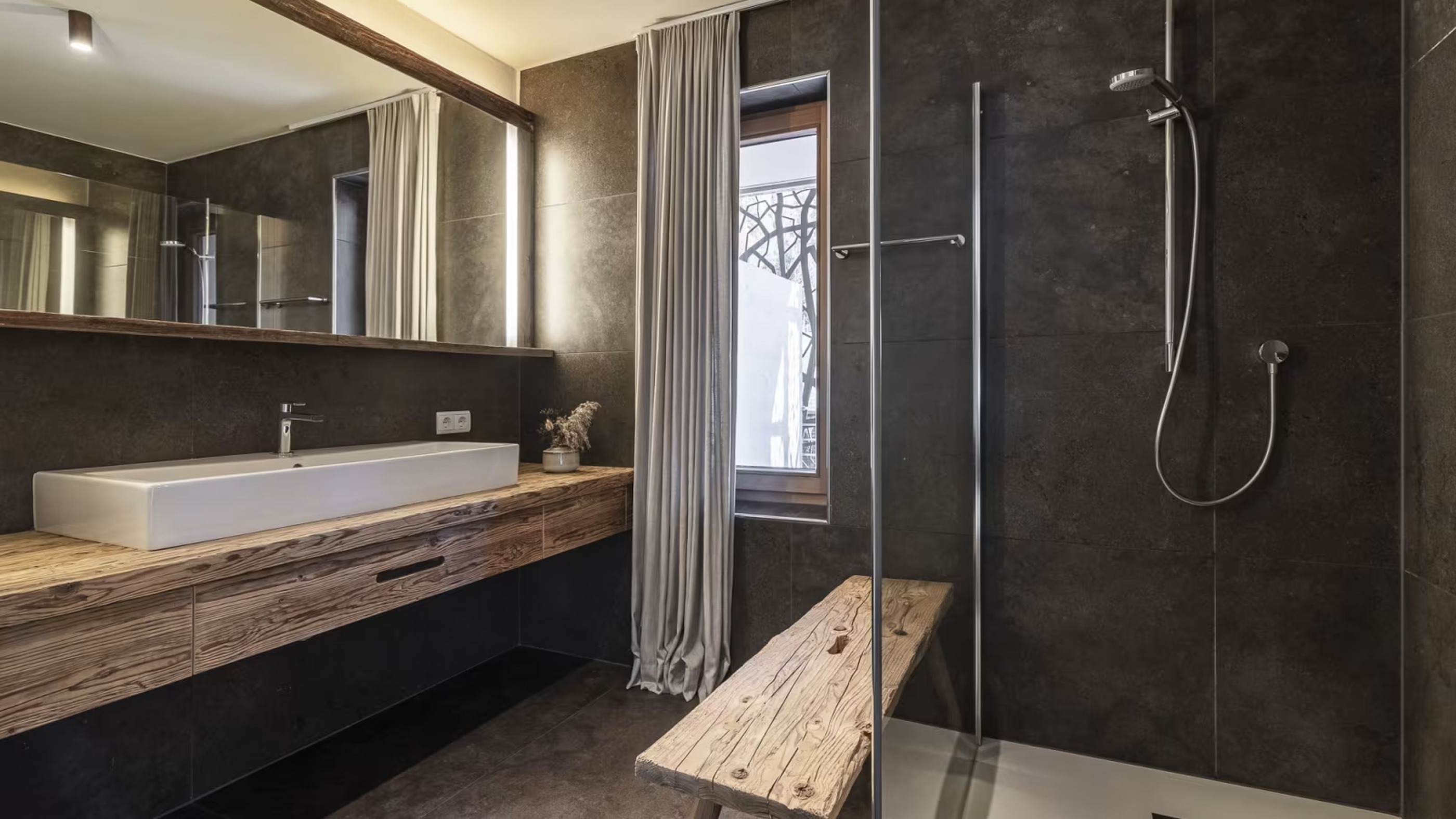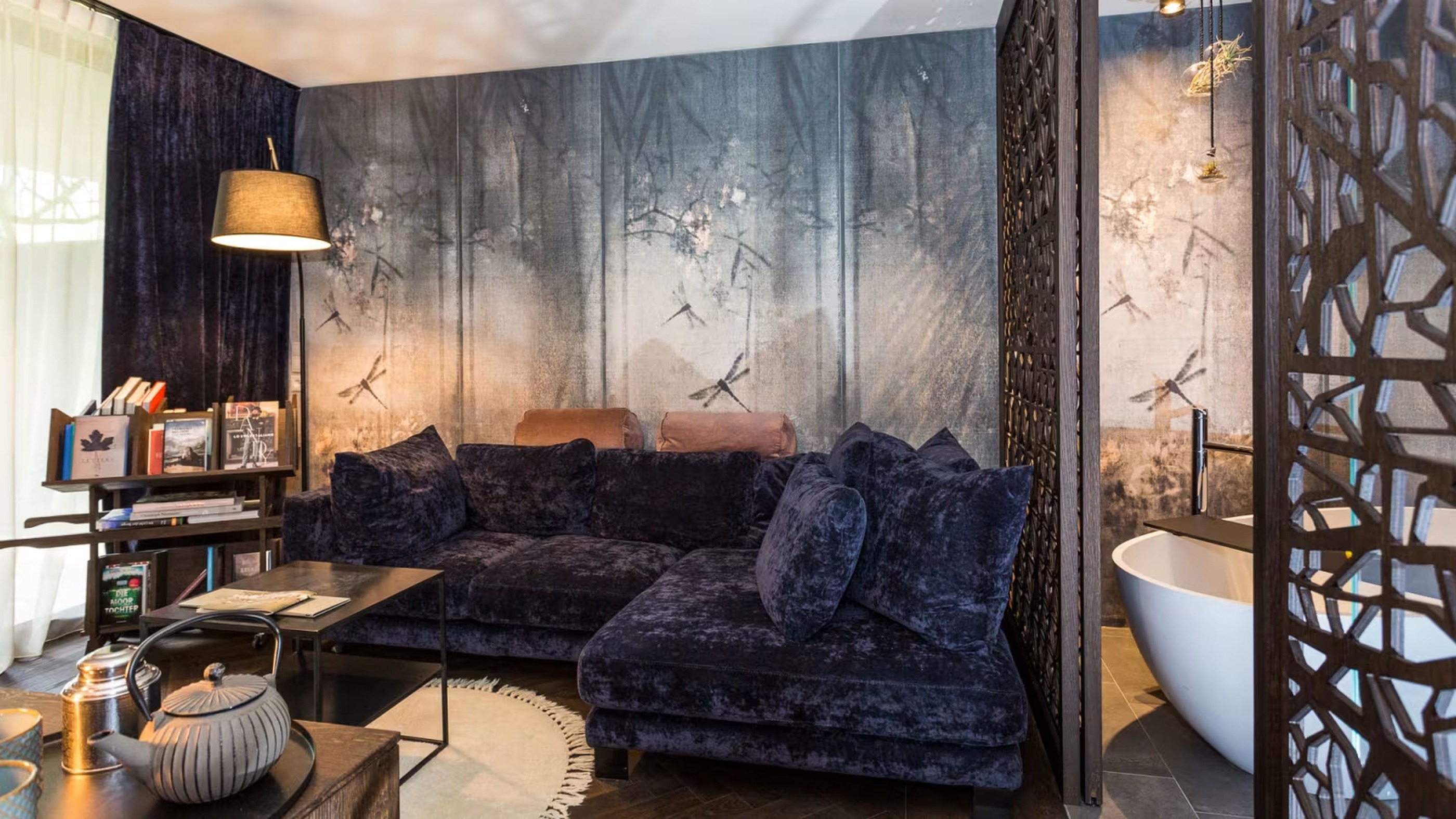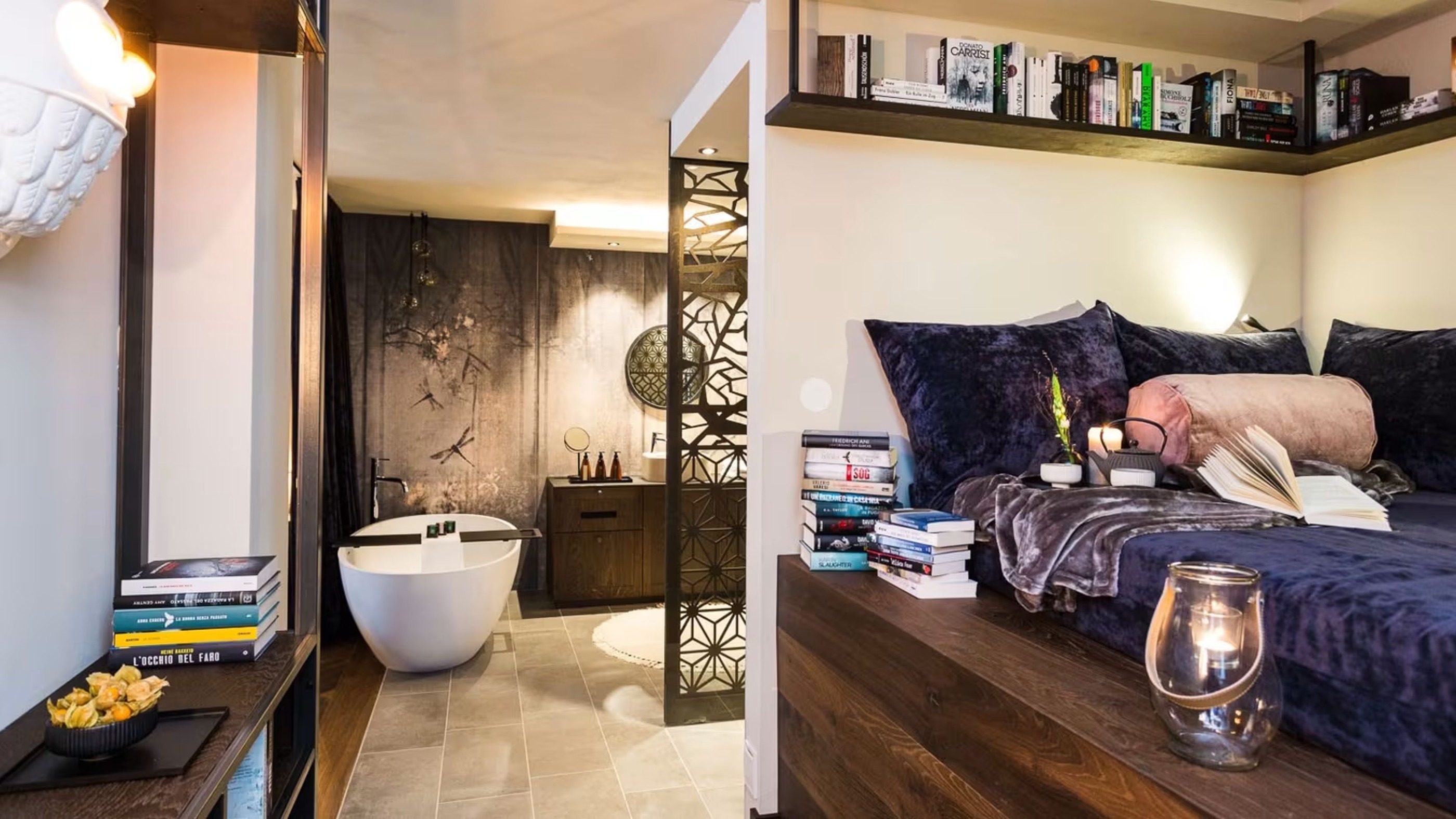 Design trifft auf Stille: Dunkle Hölzer, klare Linien, südostasiatische Elemente und alpine Akzente schaffen Räume voller Tiefe und Geborgenheit. Rückzugsorte, die inspirieren – innen wie außen.