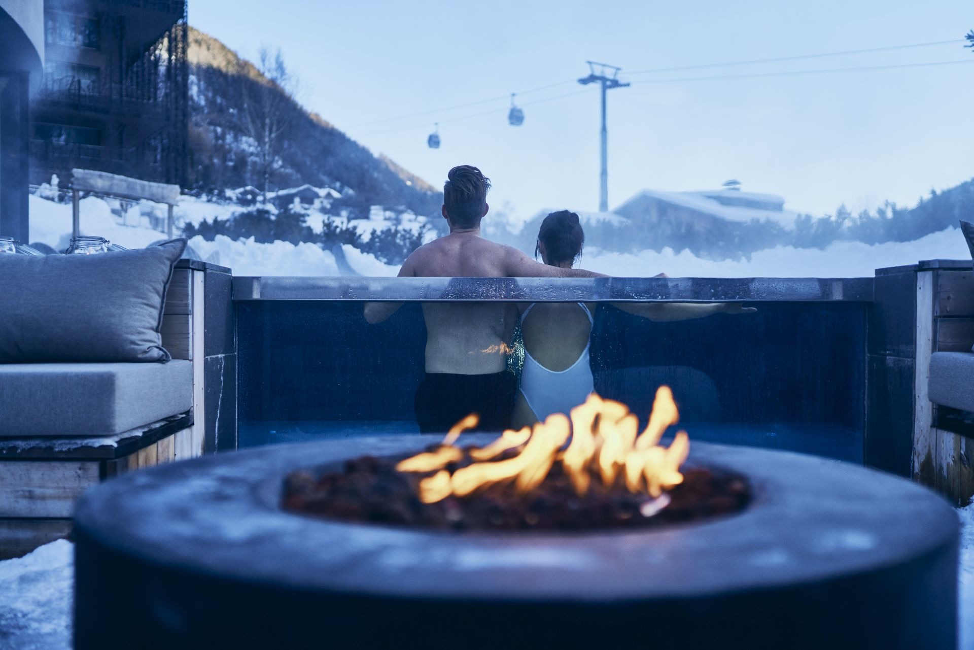 Immergetevi nell'acqua calda della piscina onsen riscaldata all'aperto e respirate la limpida aria di montagna: un rituale unico di rallentamento, ispirato alla cultura balneare dell'Estremo Oriente e sperimentato esclusivamente al SILENA.